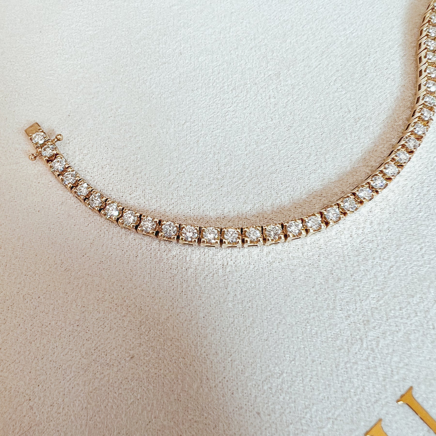 De Chloe tennisarmband is gemaakt van 18 karaat gerecycled goud en heeft een stevige en perfect weggewerkte sluiting, waardoor je de armband veilig kunt dragen.
