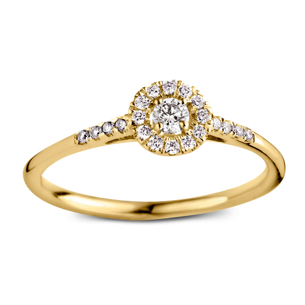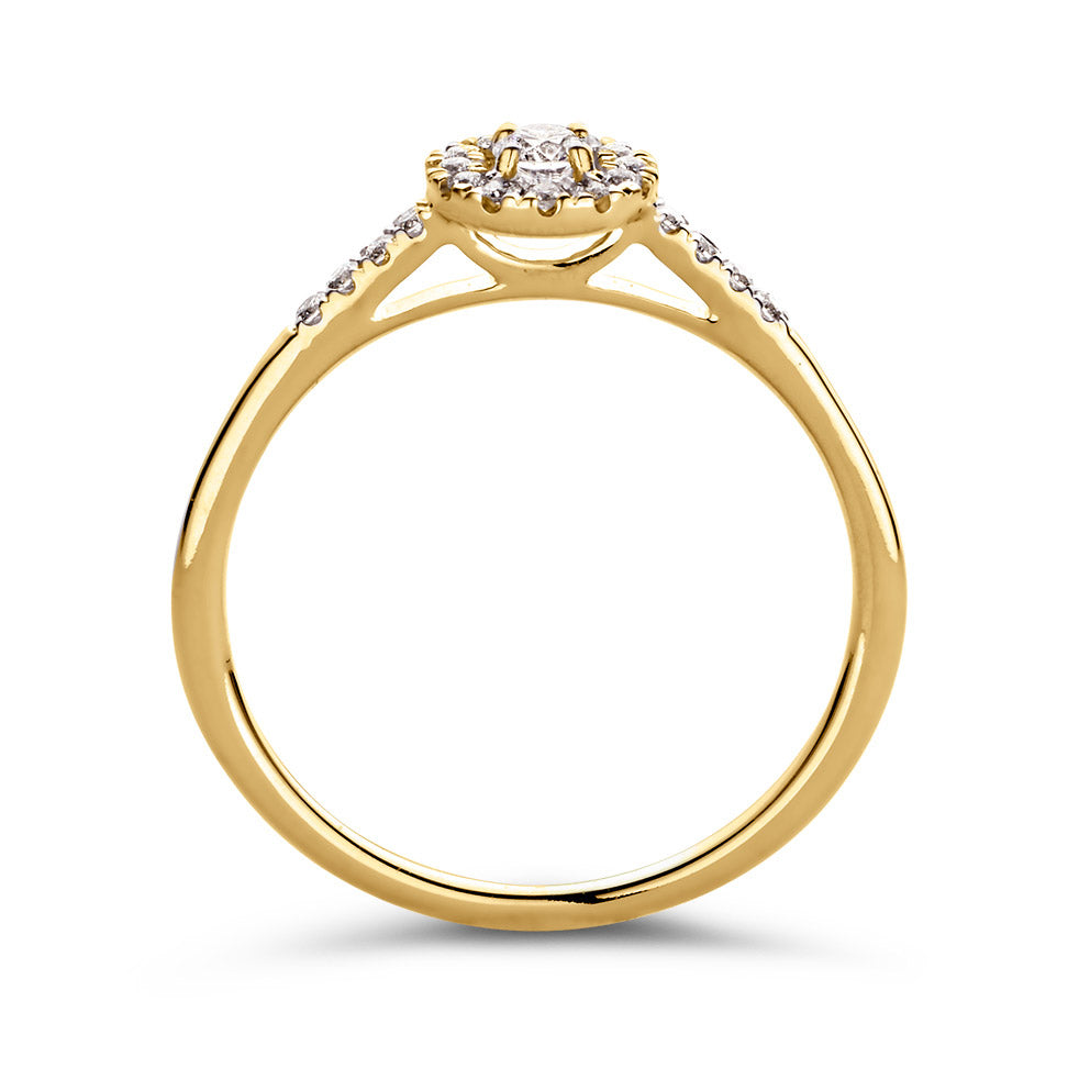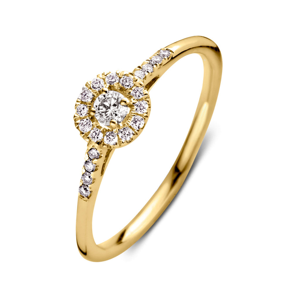 Dankzij haar stijlvolle en luxe uitstraling is ring Emma één van onze meest populaire ringmodellen. De ring heeft een schitterende entourage zetting. De ronde middensteen (briljant geslepen) wordt hierbij omringd door kleinere briljanten. De zijstenen in de scheen maken het plaatje van deze luxe ring compleet! De ring heeft een sierlijke verhoogde zetting, waardoor hij perfect gecombineerd kan worden met een gladde of diamanten rijring. Combineer haar bijvoorbeeld met de verfijnde Millie ring.