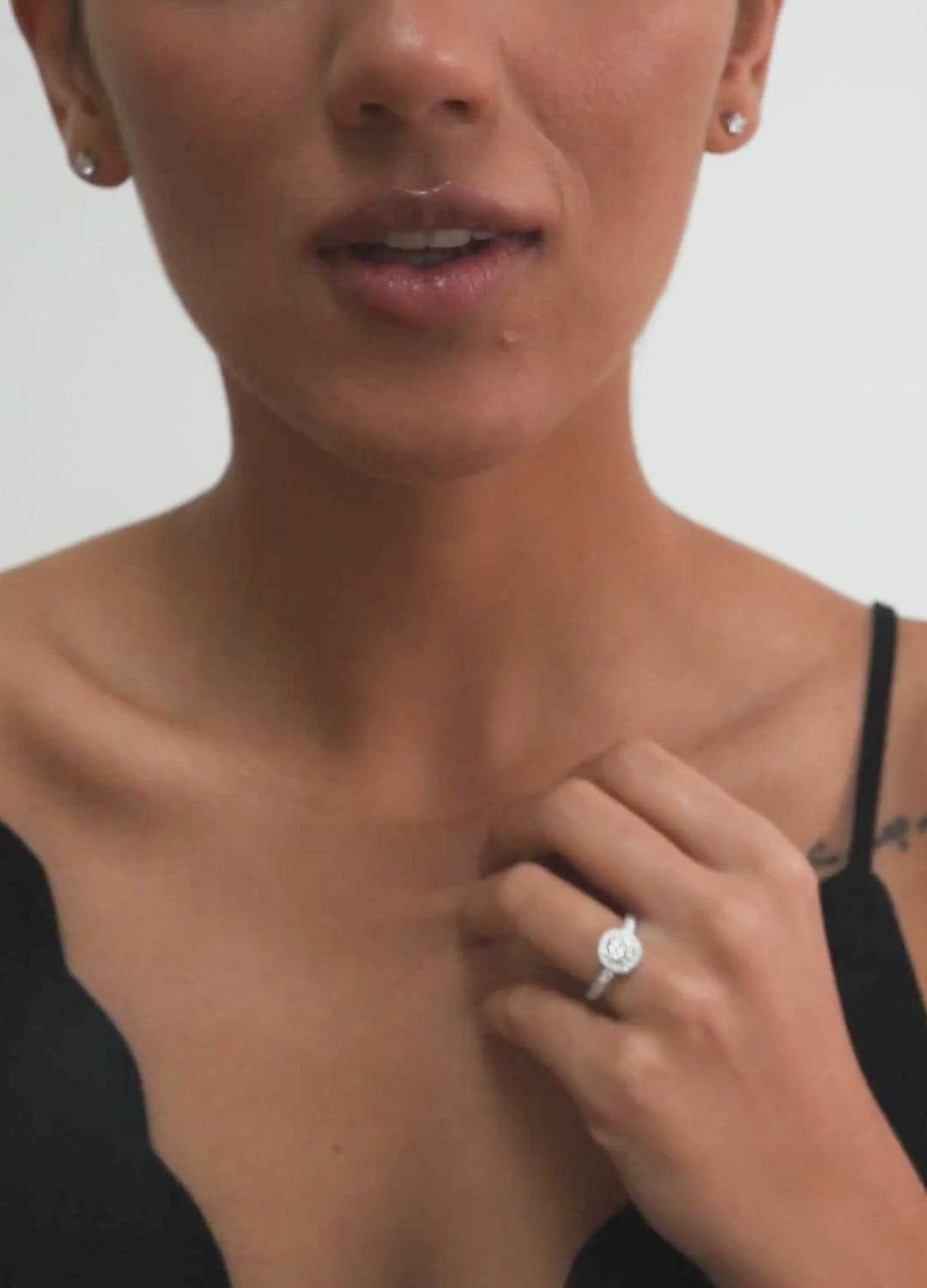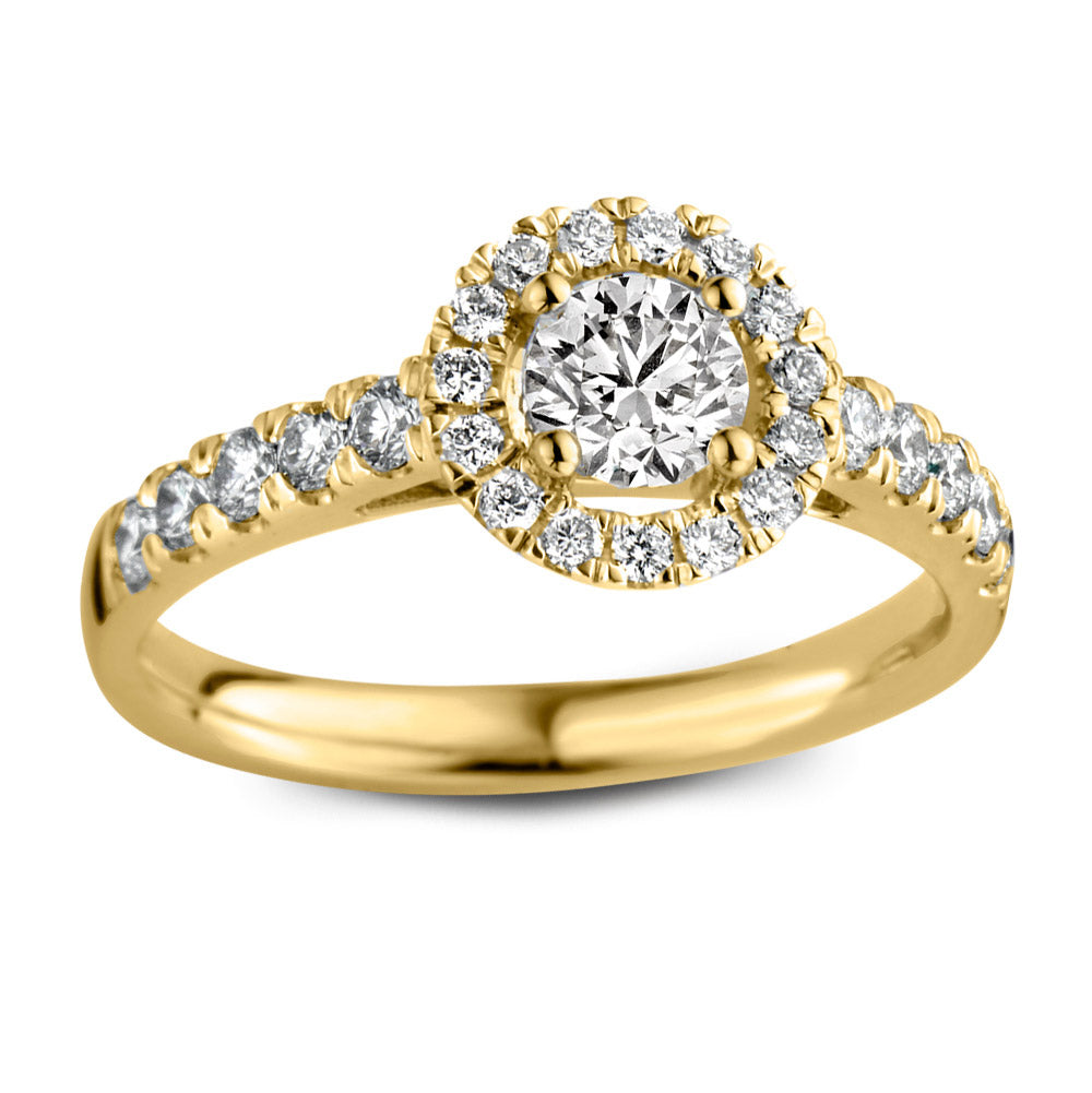 Dankzij haar stijlvolle en luxe uitstraling is ring Emma één van onze meest populaire ringmodellen. De ring heeft een schitterende entourage zetting. De ronde middensteen (briljant geslepen) wordt hierbij omringd door kleinere briljanten. De zijstenen in de scheen maken het plaatje van deze luxe ring compleet! De ring heeft een sierlijke verhoogde zetting, waardoor hij perfect gecombineerd kan worden met een gladde of diamanten rijring. Combineer haar bijvoorbeeld met de verfijnde Millie ring.