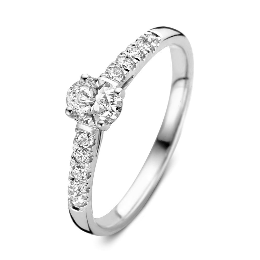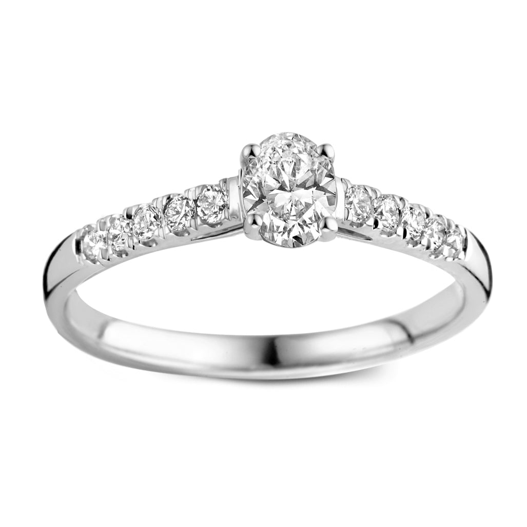 Ontdek de speelse en elegante ring Franky. Dankzij de ovaal geslepen diamant heeft deze solitair ring een opvallende uitstraling. Ovale diamanten schitteren optimaal en ogen bovendien groter. De diamanten in de band van de ring, maken deze royal versie nog eens extra vrolijk. Kies zelf de gewenste steengrootte van jouw diamant. De stijlvolle Franky ring is in verschillende maten en goudkleuren beschikbaar.