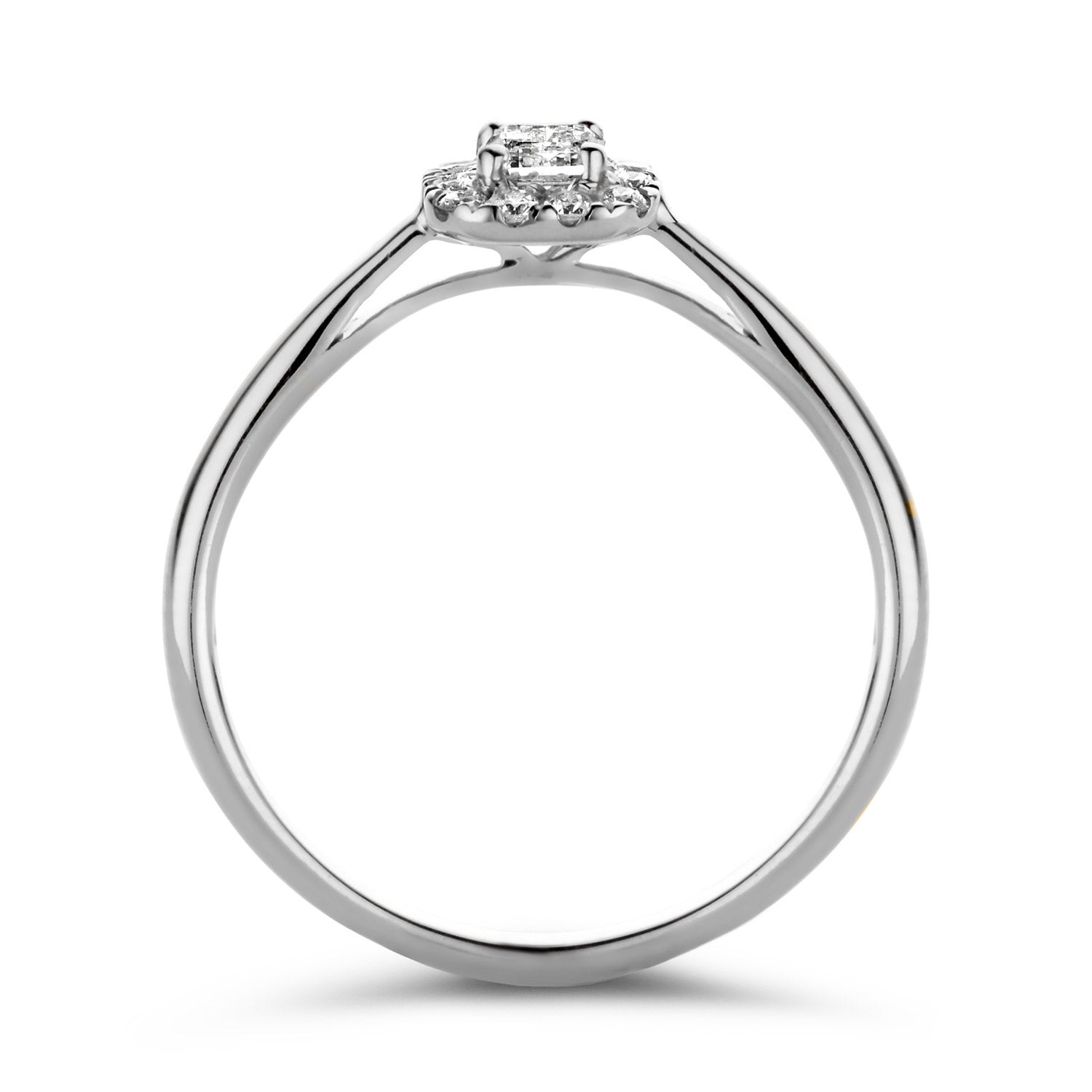 Ring Ivy is dankzij de prachtige emerald geslepen middensteen een echte showstopper! De opvallende middensteen wordt omringd door fijne briljanten voor een extra luxe uitstraling. De ring heeft een licht verhoogde zetting, waardoor hij perfect gecombineerd kan worden met een gladde of diamanten rijring. Combineer haar bijvoorbeeld met de verfijnde Millie ring.