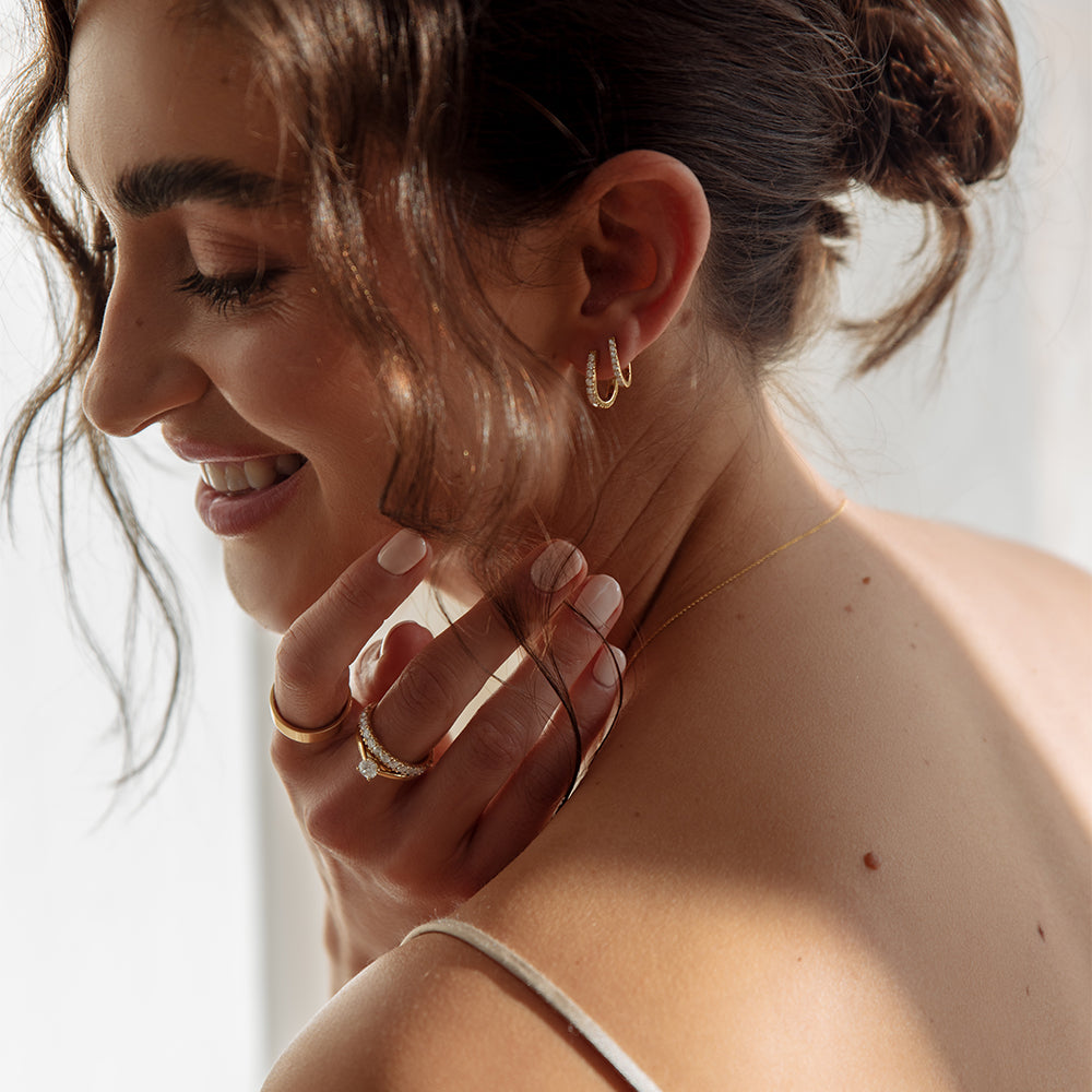 De sieraden van Aurore zijn gemaakt van 18 karaat gerecycled goud; een hoger goudgehalte met een luxe en warme uitstraling.