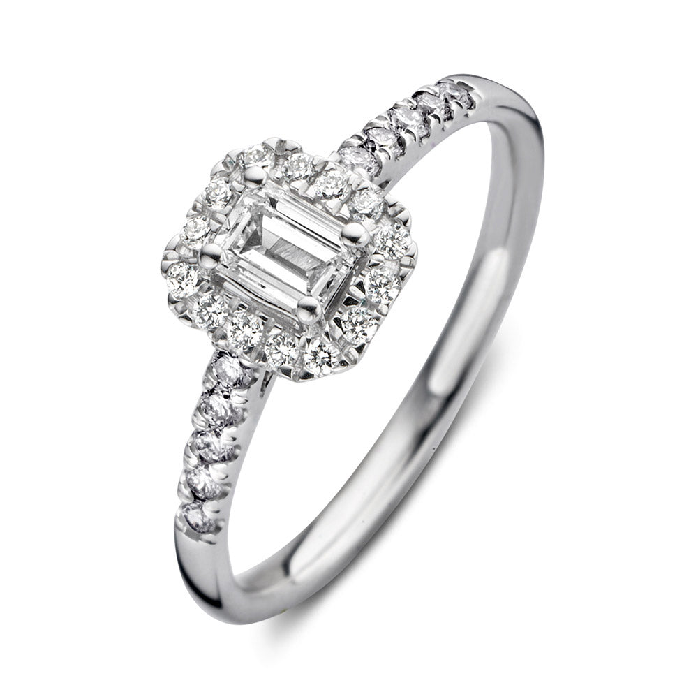Ring Ivy Royal is dankzij de prachtige emerald geslepen middensteen een echte showstopper! De opvallende middensteen wordt omringd door fijne briljanten voor een extra luxe uitstraling. De extra briljanten in de scheen van de ring maken het feestje helemaal af. De ring heeft een licht verhoogde zetting, waardoor hij perfect gecombineerd kan worden met een gladde of diamanten rijring. Combineer haar bijvoorbeeld met de verfijnde Millie ring.