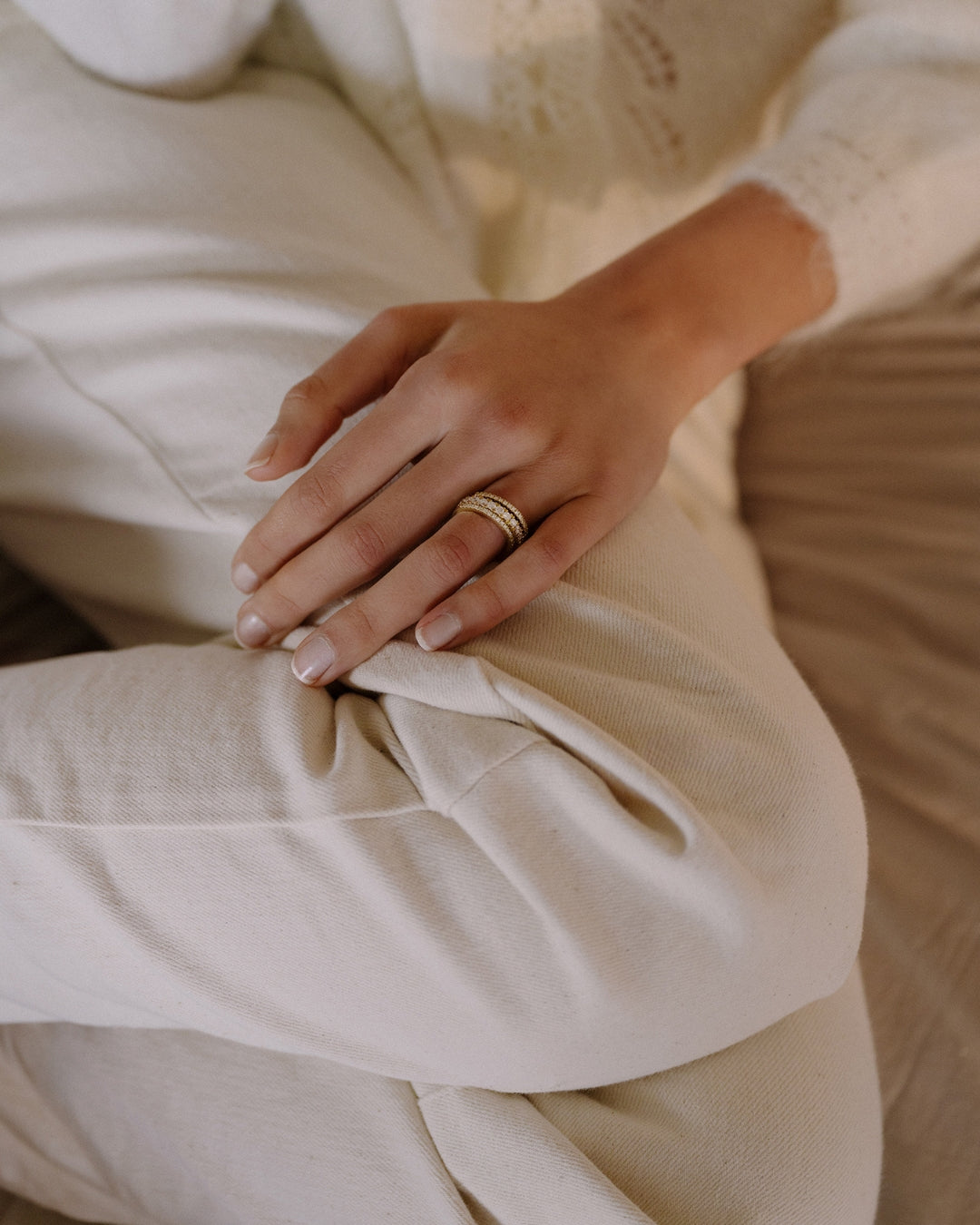 Alle ringen van Aurore zijn ontworpen om tegen elkaar aan gedragen te kunnen worden. Je kunt je prachtige ringen dus altijd aanvullen en combineren!