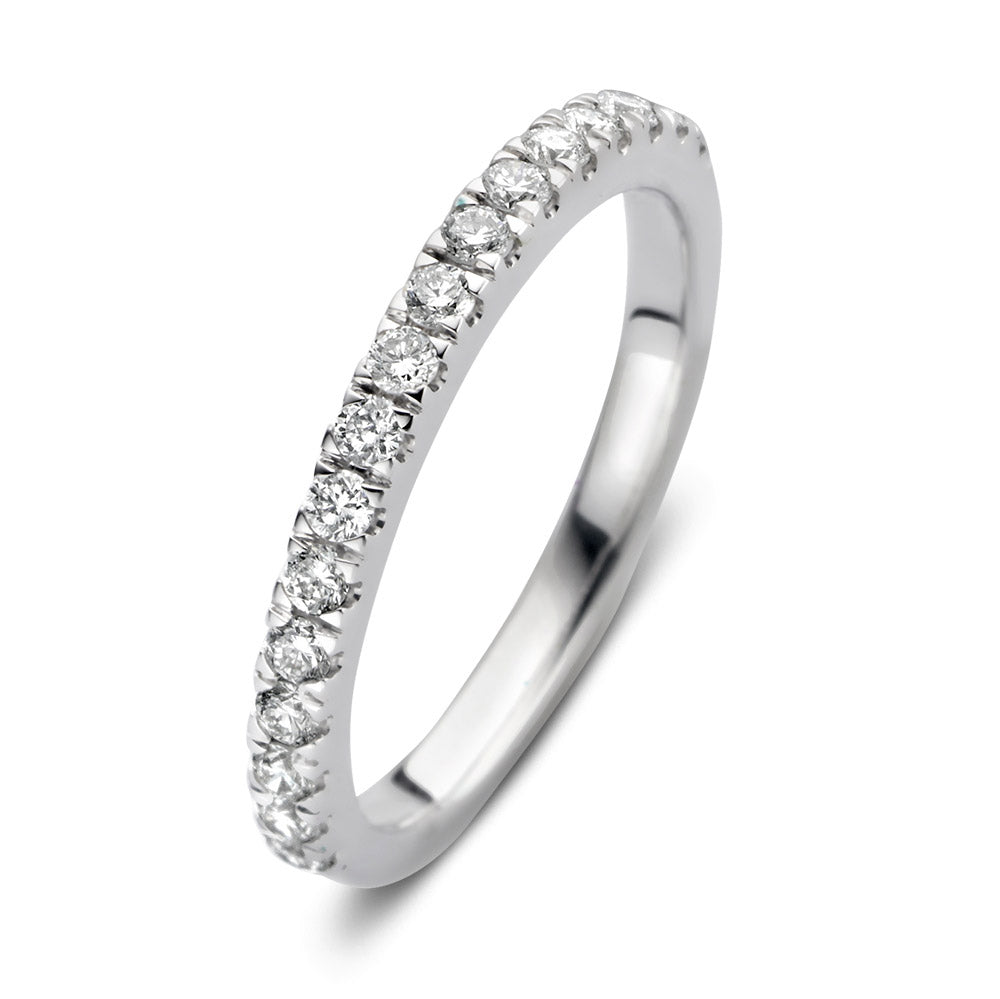 Millie is een klassieke rijring welke je onmiddellijk tegemoet schittert. De ring is halfom gezet met fijne briljanten in stevige chatonzetting. Dankzij deze open zetting zijn de diamanten niet alleen goed beschermd, maar kunnen ze het licht optimaal weerkaatsen. Ring Millie is niet voor niets één van de highlights in onze collectie. Ze is perfect te combineren met veel van onze andere ringen. Probeer Millie bijvoorbeeld eens in combinatie met solitair Olivia.