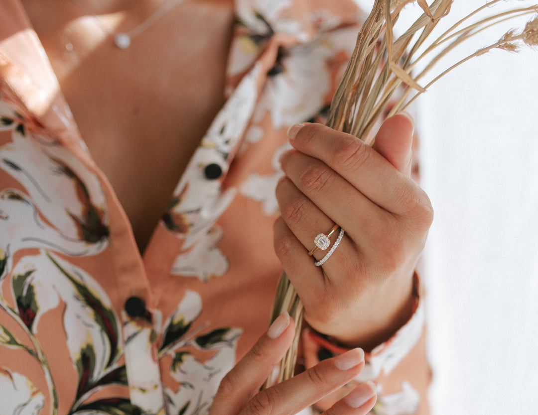 Na het uitzoeken van een verlovingsring en het plannen van het aanzoek, gaan jullie straks waarschijnlijk samen op zoek naar een set passende trouwringen. Het is daarom verstandig om hier bij het uitzoeken van de verlovingsring alvast rekening mee te houden. Alle Aurore ringen zijn zo ontworpen dat ze perfect gecombineerd kunnen worden met een trouwring.